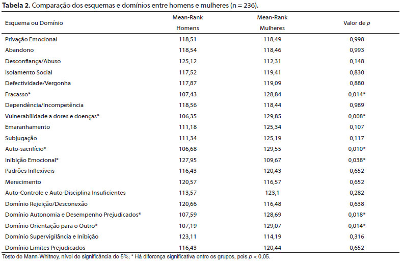 Diferenças nos esquemas iniciais desadaptativos de homens e mulheres |